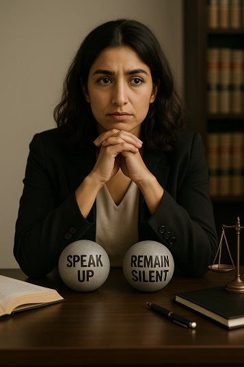 Ultimately, the choice between speaking up and staying silent is never simple. But as legal professionals, our duty to uphold integrity and justice is paramount. While the short-term consequences may be difficult, the long-term benefits of aligning our actions with our ethical values far outweigh the cost of silence. By standing up for what is right, we not only protect our professional identity but also foster a culture of accountability and trust within the legal field.