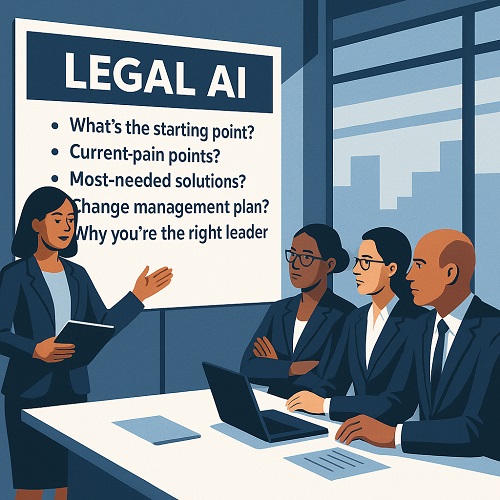 · A foundational understanding of how AI works (take that Coursera course, follow legal AI thought leaders, speak at a legal tech summit).