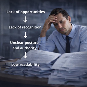 Overlapping legal perimeters, teams presented as complementary but perceived as competing, business leaders unsure who to contact, for what, and when.